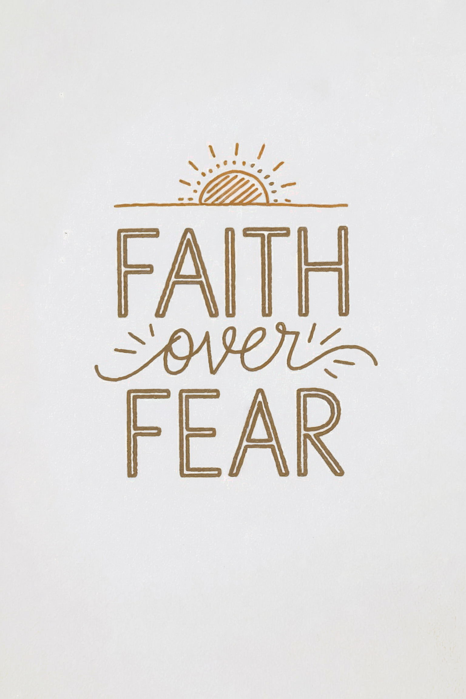 Choose faith over fear with this encouraging "Faith Over Fear" Christian Card. This Christian greeting card delivers a powerful message of hope and courage with the simple phrase "Faith Over Fear." The design features a hand-drawn sun rising, symbolizing hope overcoming darkness. Printed on premium matte cardstock, this inspirational card is perfect for sending messages of faith, encouragement, and strength in challenging times. The blank interior allows for a personal message of support and reassurance for any occasion. Share a message of courage and faith with this uplifting religious card featuring a sun. Kraft envelope included.